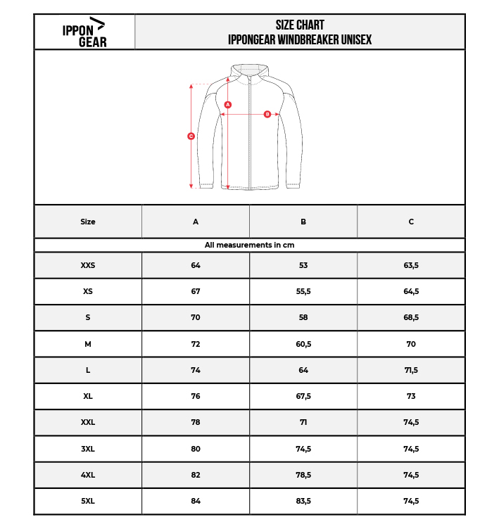 Größentabelle IPPONGEAR AIR WINDBREAKER JACKE