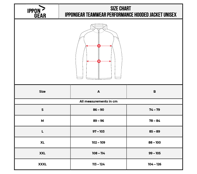 Größentabelle IPPONGEAR HOODY PERFORMANCE
