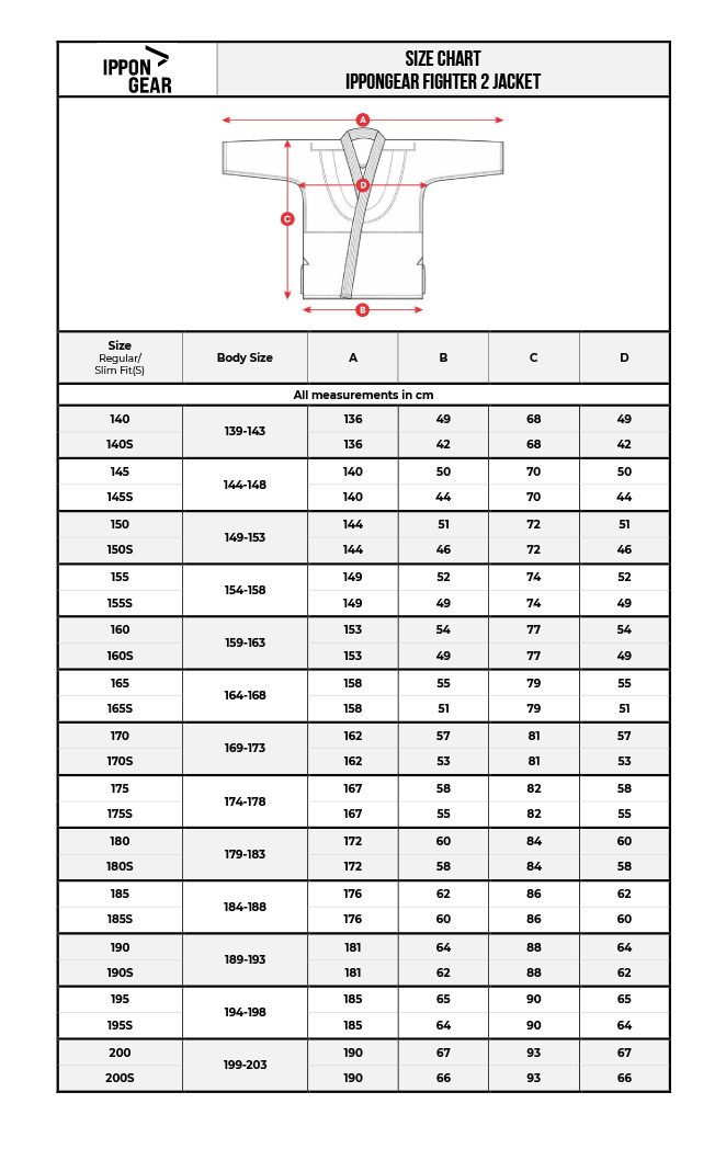 Größentabelle IPPONGEAR JUDOJACKE FIGHTER 2