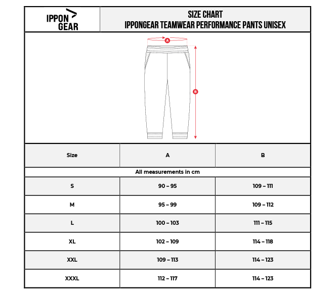 Größentabelle IPPONGEAR TRAININGSHOSE PERFORMANCE